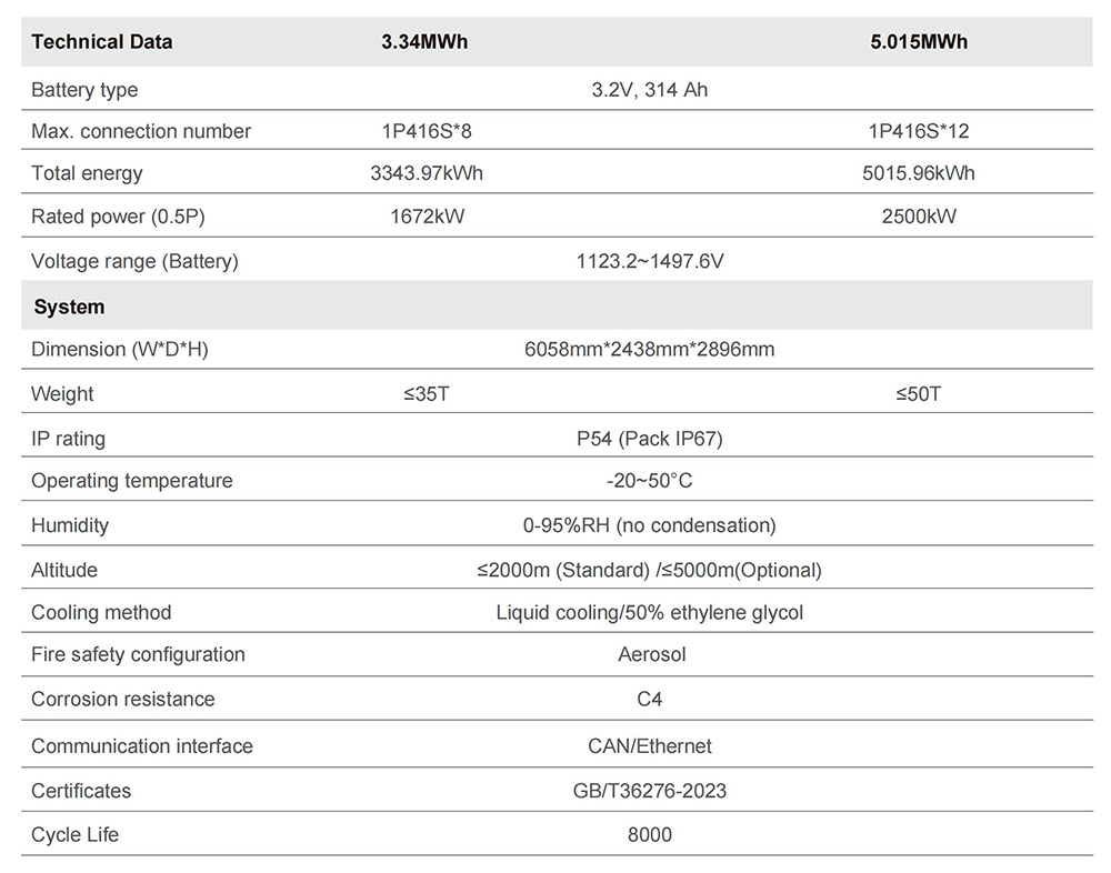 5MWh capacity in a standard 20ft container for maximum energy density and space savings.